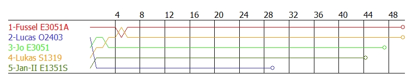 | 4 | Jan-II E1351S | 44 | 12:12,136 | +3 L | +6 L | 10,952 (12) | 16,398 | 11,890 |