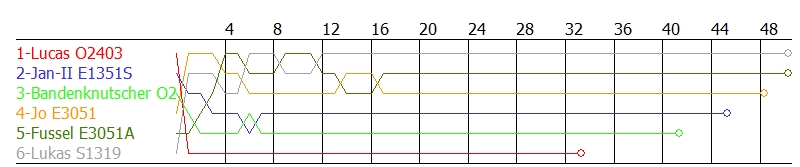| 5 | Bandenknutscher O2468 | 41 | 12:17,673 | +4 L | +9 L | 11,354 (30) | 17,344 | 33,500 |