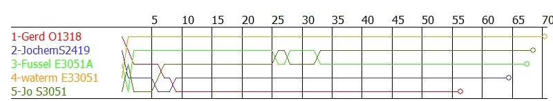 | 1 | waterm E33051 | 70 | 0:14:34 | | | 09,528 (12) | 12,399 | 09,832 |