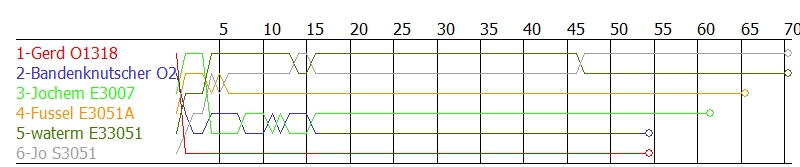 | 6 | Gerd O1318 | 54 | 0:13:01 | +15,550 | +16 L | 11,008 (06) | 14,367 | 11,590 |