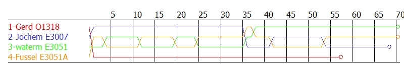 | 1 | waterm E3051 | 70 | 0:18:03 | | | 11,876 (65) | 15,282 | 12,370 |