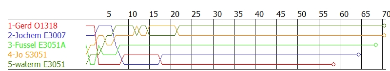 | 1 | waterm E3051 | 70 | 0:18:10 | | | 11,758 (60) | 15,513 | 12,028 |