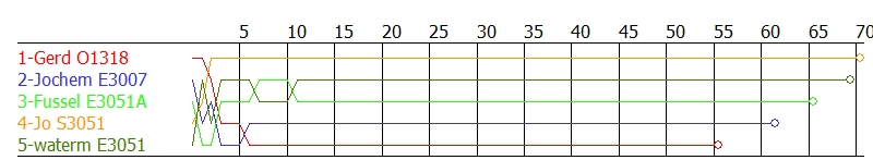 | 3 | Fussel E3051A | 65 | 0:17:15 | +4 L | +5 L | 12,190 (48) | 15,724 | 12,282 |