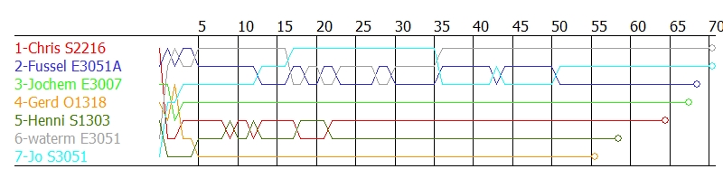 | 4 | Jochem E3007 | 67 | 19:28,673 | +1 L | +3 L | 12,108 (22) | 16,848 | 19,430 |