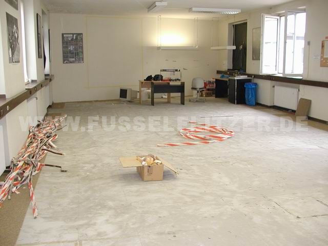 17.03.2013 | Vor Langeweile kamen wir auf die Idee das Fusselflitzer Logo, mit einem Projektor an eine Wand im Rennstreckenraum zu werfen und mit Bleistift nachzuzeichnen. Anschließen hatte sich Sven die passenden RAL Farben besorgt und angefangen es auszumalen. Am 26. März wurde er fertig. Alle Fusselflitzer waren begeistert. |