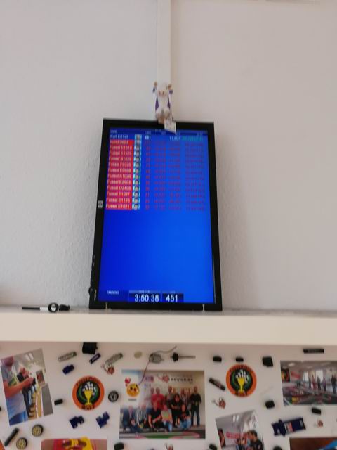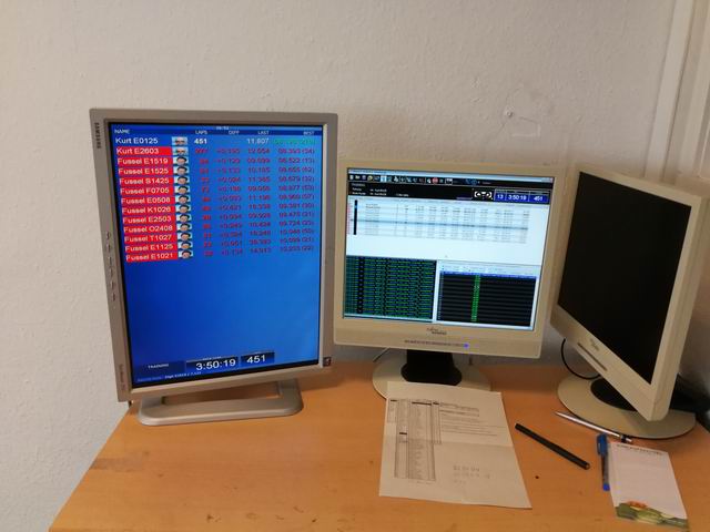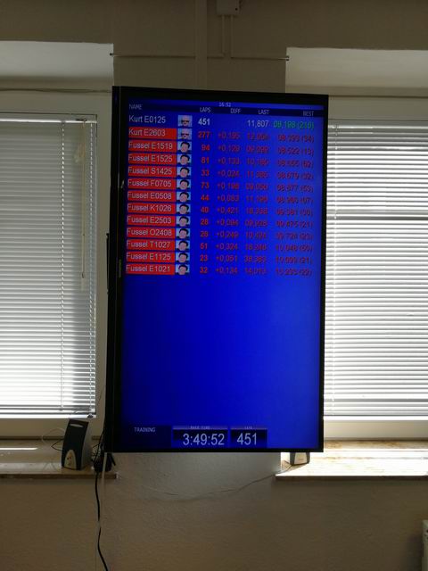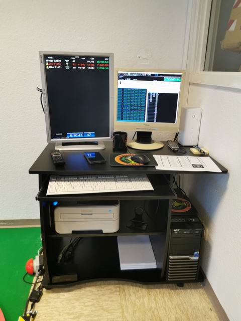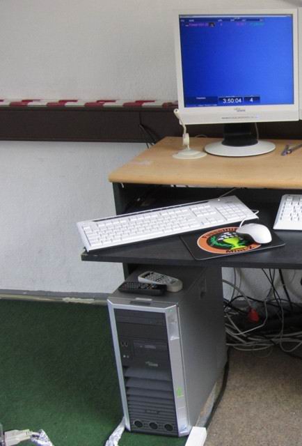 06.10.2012 | Es wurde Zeit unseren Messanlagen Computer aufzurüsten. Eine GFX Karte Grafikkarte mit 2 Monitorausgängen wurde installiert. Um eine bessere Übersicht am PC zu erhalten, wurden 2 Monitore aufgestellt. Jetzt konnten auf dem linken Monitor, während des Betriebes, Fahrerdaten bearbeitet und auf dem rechten Monitor die Rundenzeitanzeige dargestellt werden. Am rechten Monitor waren gleichzeitig der Videoprojektor und die Monitore für die Werkstatträume angeschlossen. |