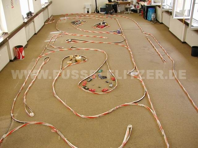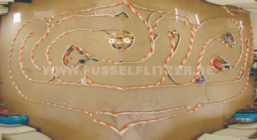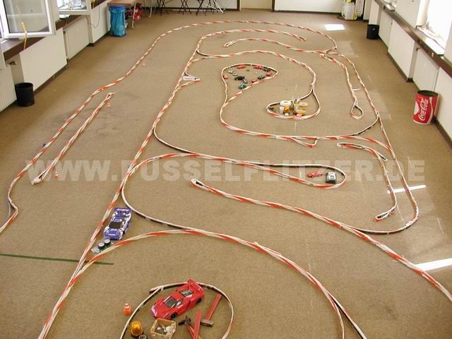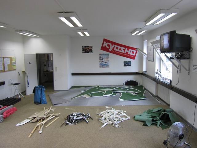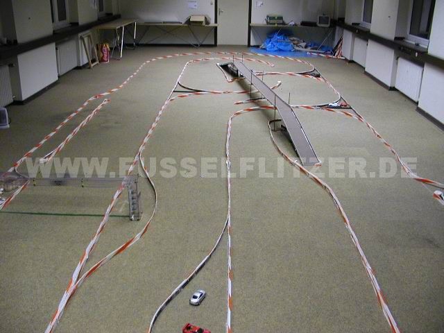 26.07.2013 | Aufbau des ersten RCP Rennkurses, bestehend aus einem 50er RCP Track Set, einem großem Oval und 4 großen Innenkurven. |