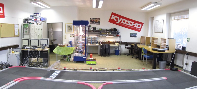 "fliegenden" Ableger, die Fusselflyer. Regelmäßig flogen ein paar unserer Fahrer in unseren Räumlichkeiten. Natürlich nur dann, wenn kein Rennbetrieb war. Mit 10x10 cm großen Mini Quadrocoptern, wurde ein abgesteckter Kurs durchflogen. Die meisten Quadrocopter hatten eine kleine Kamera verbaut, damit flog der Pilot den Copter über eine Videobrille durch den Kurs. Das Ganze nennt sich FPV (First Person View). |