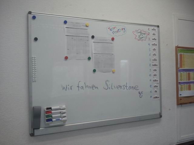 06.09.2012 | Im Rennstreckenraum hing von nun an ein Whiteboard. Hier konnte man aktuelle Infos einsehen. |
