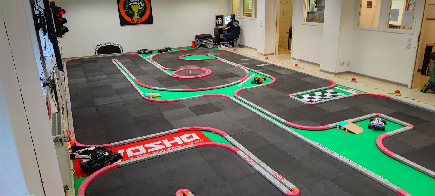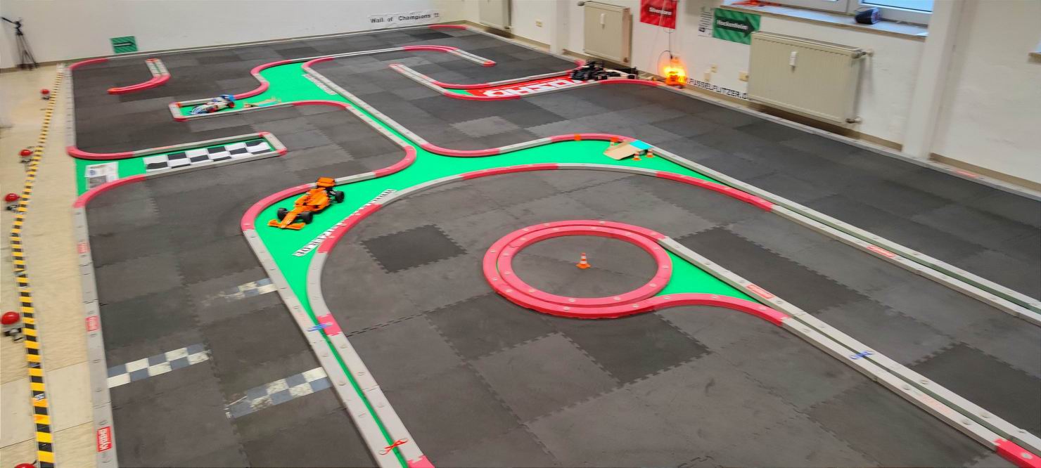 Der Rennstrecken Raum ist 12,2 Meter Breit und 6,6 Meter Tief.